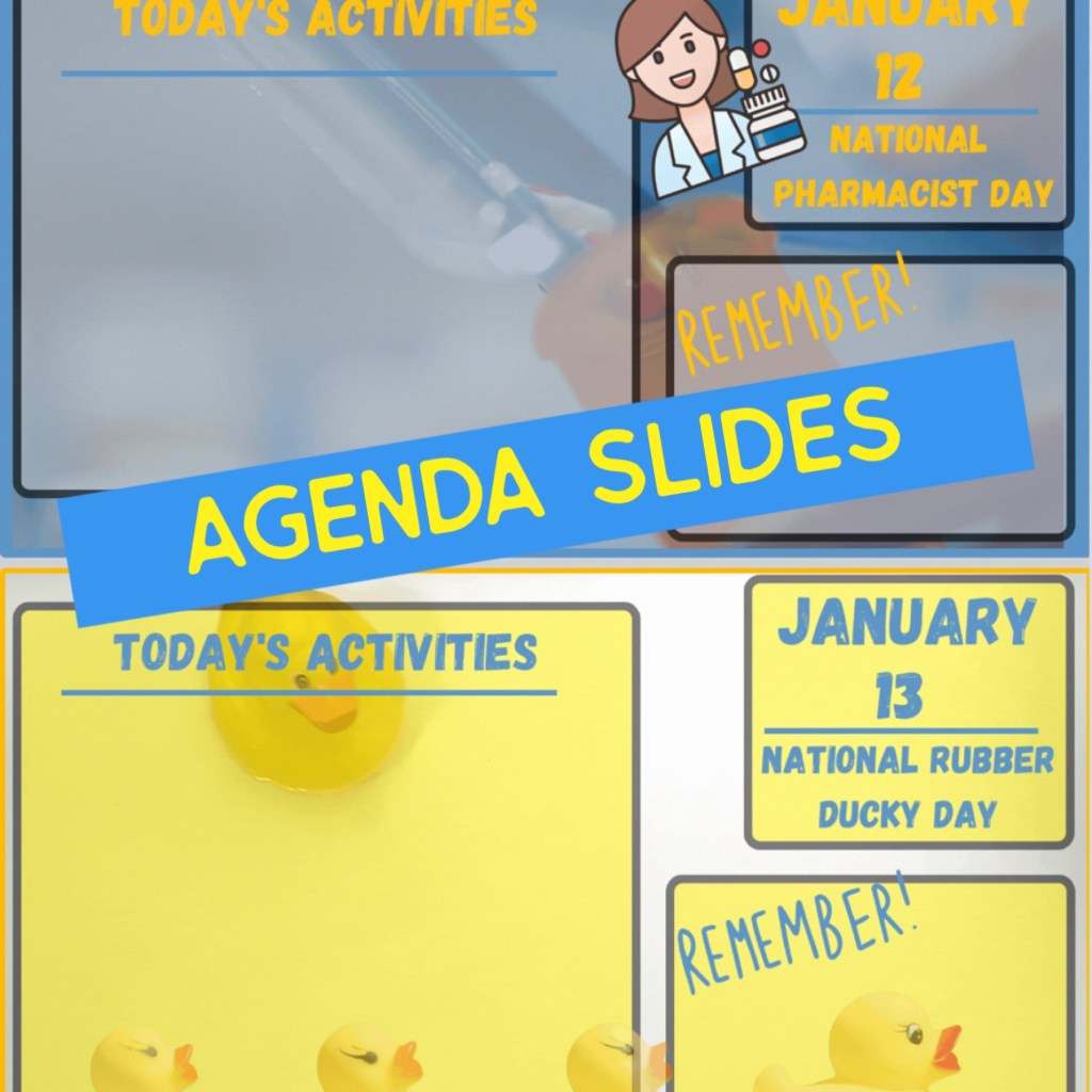 Over the holiday break, I really started to think of what I can do to try to make it easier on other teachers and administrators even if doing the smallest of things to help. I know that many teachers use agenda templates to start their day. I’m fairly good at PowerPoint and Google Slides, so I’m going to give it a go!